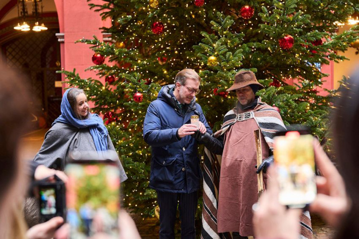 Am Dienstag, 16. Dezember 2025, besuchten Maria und Josef zum ersten Mal den Rathausinnenhof, wo sie von Regierungspräsident Conradin Cramer begrüsst wurden.