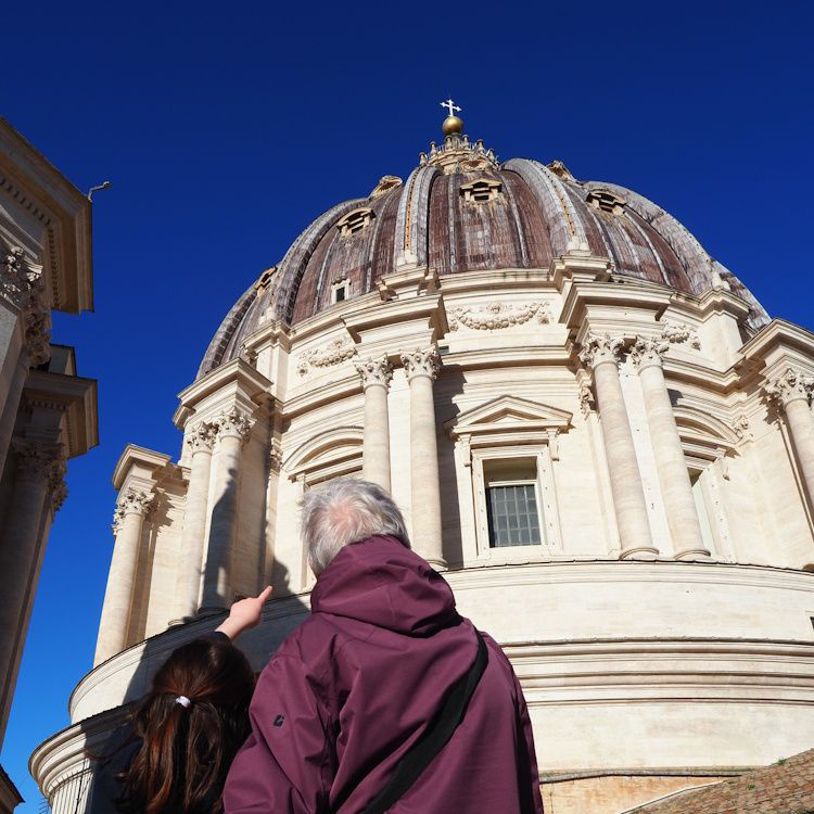 Sehr früh ging es raus, um die Wartezeit für den Besuch der Kuppel des Petersdoms so kurz wie möglich zu halten. Der Blick über Rom war atemberaubend. Die Reise, so erzählt Ursula, ist ein Geschenk für ihre Enkelin zur Erstkommunion. Die Fahrt macht Elena sichtlich Spass, was sie sieht und erlebt, gefällt ihr. Sie fotografiert Möwen, stellt Fragen und sagt bei der Pause nach dem Kuppelabstieg: «Ich habe alle Stufen gezählt». Tatsächlich war sie konzentriert, sie hat nur 10 Stufen zu viel als Ergebnis.