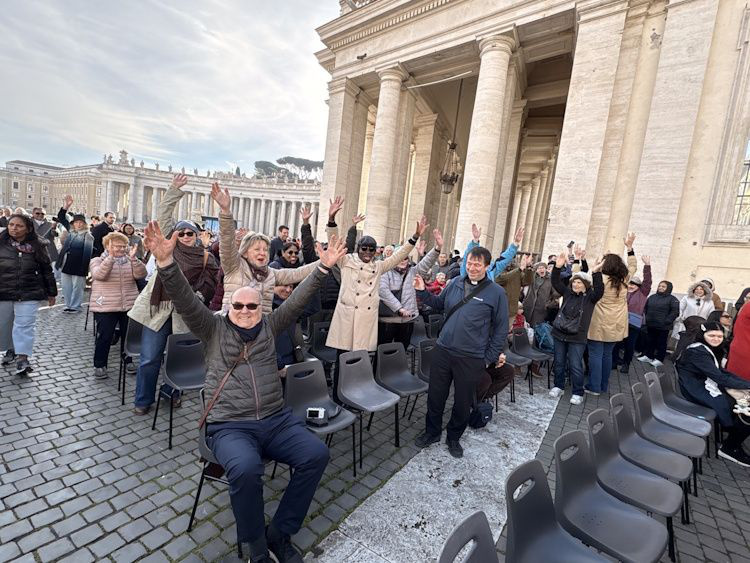Früh raus, um «Schlange-stehen» zu vermeiden, ist auch am 3. Tag der Reise Programm. Ein bisschen Anstehen für die Generalaudienz am Aschermittwoch muss dann aber doch sein. An den Plätzen angekommen, heisst es weiterhin warten. Im Schatten ist es frisch