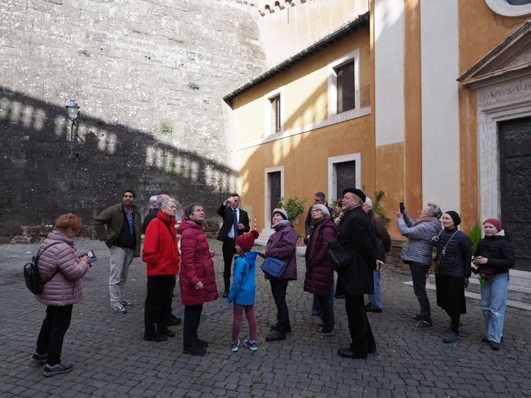 Im Vergleich zur imposanten Fassade von S. Giovanni in Laterano ist dieser unscheinbare Bau aus rotem Backstein nicht gerade ein «Eye-Catcher». Da werden die touristisch-frommen Augen eher noch auf die danebenliegende Hl. Treppe gelenkt. In unserer Gruppe haben wir letztere recht liegenlassen und uns zu dieser diskreten Taufkirche «S. Giovanni in Fonte» begeben. Es handelt sich dabei um das wohl älteste Baptisterium der Katholischen Kirche aus der Zeit Konstantins (4. Jh.). Wichtig ist dabei nicht so sehr die spätere Ausstattung im Innern, vielmehr der ursprüngliche achteckige Grundriss, der allen späteren Taufkirchen zum Vorbild wurde. 8! – bei dieser Zahl sollten wir aufmerksam werden; denn sie verweist darauf, dass wir als Getaufte an Tod und Auferstehung Jesu Christi teilhaben. Wir wissen alle, was sich «acht Tage danach» ereignet hatte (Joh 20,26). Zu Beginn der Kirche waren sich Christen der zentralen Bedeutung der Taufe bewusst und haben dies unter anderem dadurch zum Ausdruck gebracht, dass sie dafür entsprechende Orte, eben Baptisterien, geschaffen haben. (Ein Beispiel aus unseren Tagen findet sich in der Taufkapelle der Kirche St. Michael im Hirzbrunnen.) Die Taufe ist eben mehr als ein unverbindliches Ritual zu Beginn des irdischen Lebens. Sie ist zusammen mit der Eucharistie eines der beiden «Zeichen der Nähe Gottes», die sowohl in unserer wie auch in den Kirchen der Reformation als Sakrament angesehen wird, dem wir entsprechende Bedeutung schenken sollten. (Mario Tosin, Pfarrer St. Clara, Begleitperson)