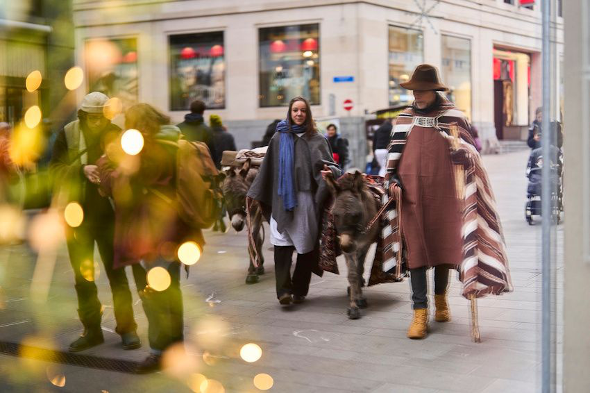 Es ist wieder so weit: Wie schon in den Jahren zuvor wandern Maria und Josef gemeinsam mit ihren Eseln, begleitet von Musik, durch Basel. Am 16., 17. und 18. Dezember, jeweils ab XX Uhr kann man ihnen begegnen. Die geplanten Routen sind (kurzfristige Änderungen möglich).