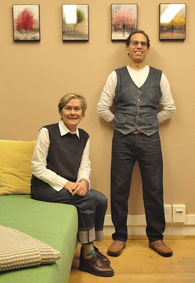 Zum Gespräch erscheinen beide unabgesprochen im fast identischen Dress und lachend herzlich los, als sie das sehen. «Wir waren wohl mit Bluetooth verbunden», scherzt José Oliveira – «Wir leben eben beide in den Tag hinein und lassen uns von dem überraschen, was kommt», erwidert Trudy Wey.